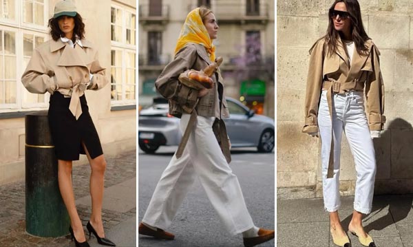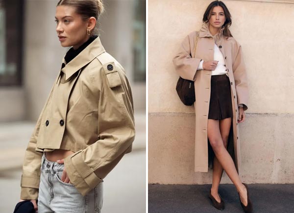 Short tie-strapped trench coats offer a perfect layering effect for autumn.