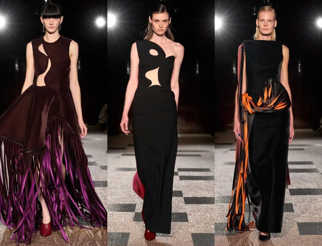 Architectural silhouettes and irregular cuts were accented with fringed details, creating garments that sculpted curves with each model's stride.