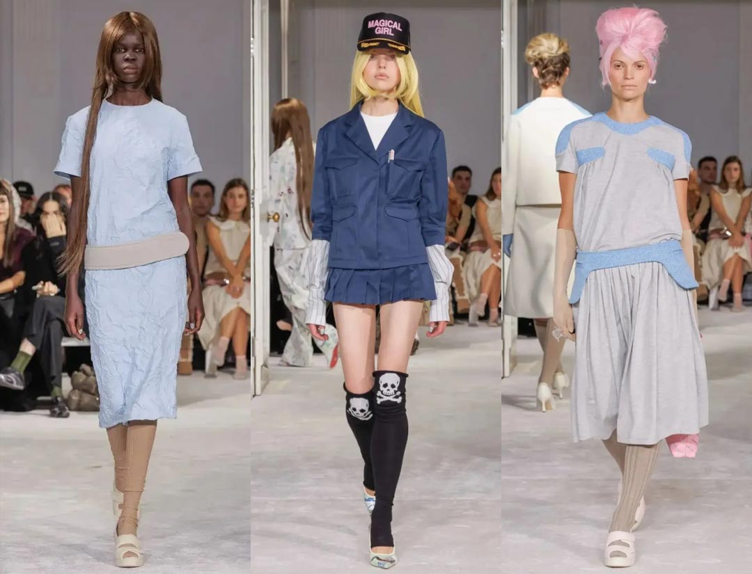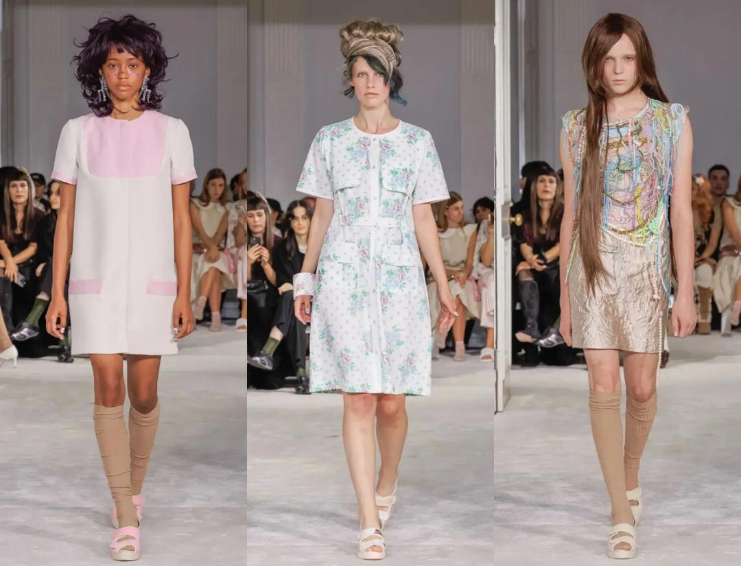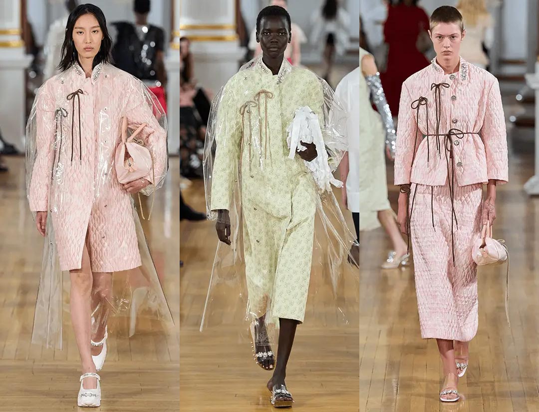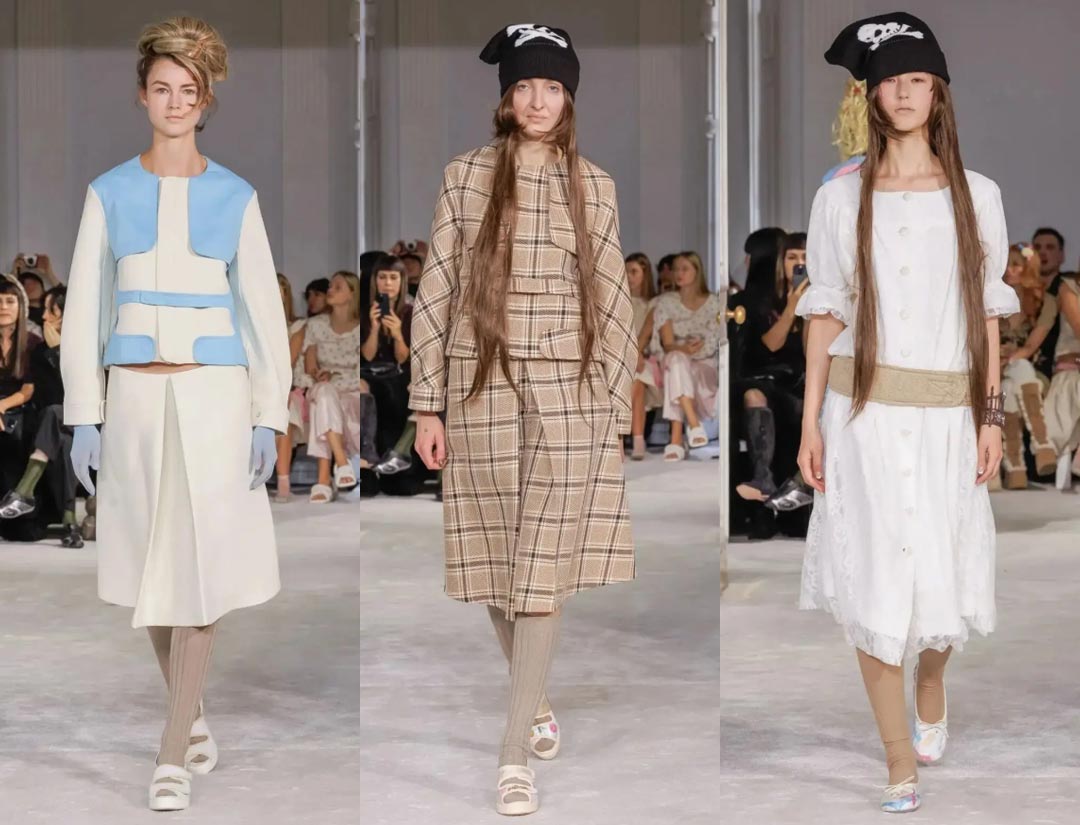 For footwear, Simone Rocha once again collaborated with Crocs, creating a platform ballet pump and Trailbreak hybrid that was both sweet and sporty. The entire show captured the delicate transition between romance and insecurity in a young girl, embodying the complexity of growing up.