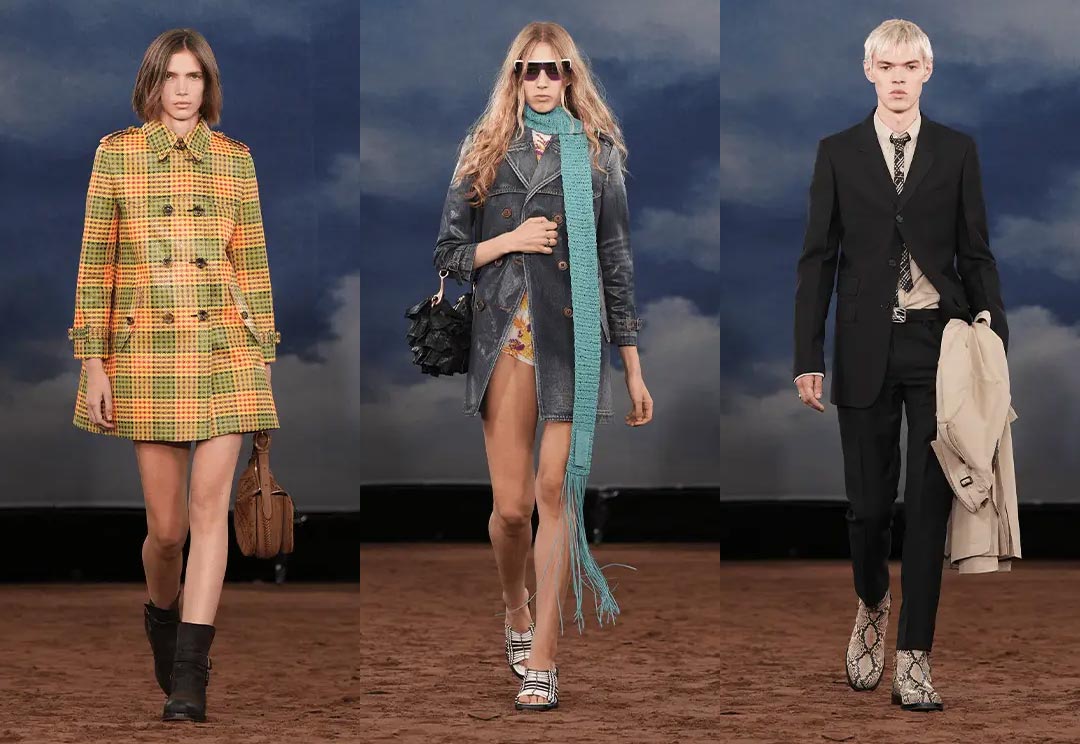 Burberry reimagines the British plaid with a youthful narrative, blending music festival culture with traditional roots to create an atmosphere both nostalgic and liberated.