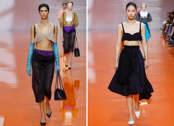 They can wear shirts and workwear with sharp, ironed lines, transforming into office beauties with the precision of architectural blueprints, or they can create a new kind of sexiness in inverted V-neck tube tops and lace skirts.