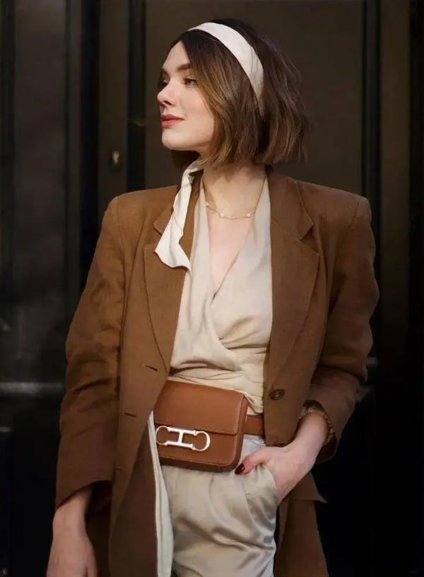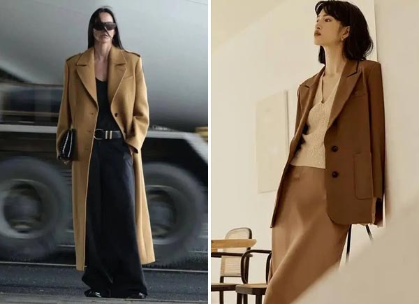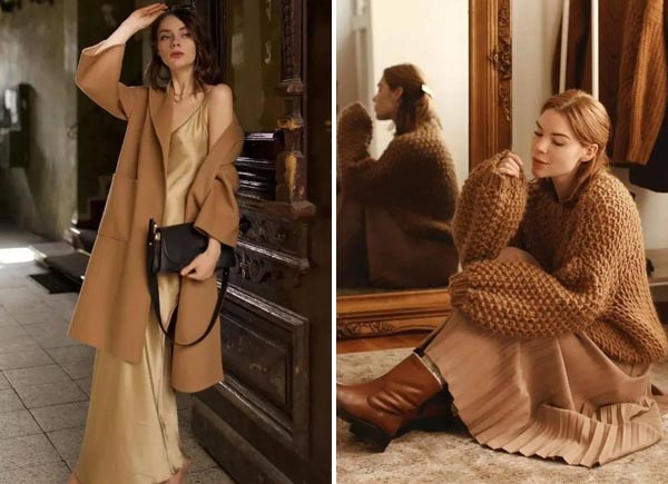 Color Matching Logic: Avoid monotony by layering browns of varying brightness and textures. For example, a dark brown suit with a light brown pleated skirt, or a brown-brown sweater with chocolate-brown wool pants, creates a sense of visual extension and a slimming effect.