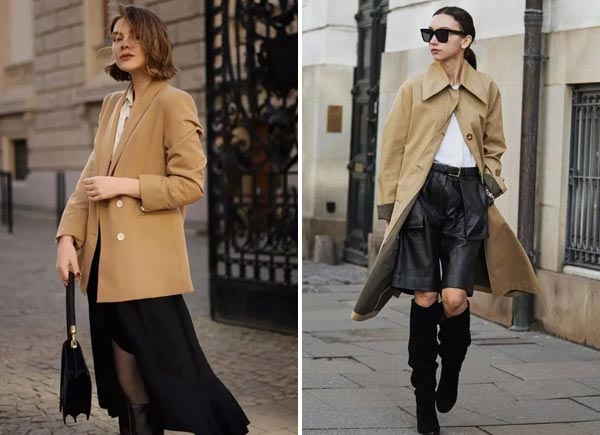 Instead of dark outside and light inside, we can choose a dark brown base layer paired with a light-colored jacket. This combination creates a softer, fresher look, creating a simple, sophisticated feel.