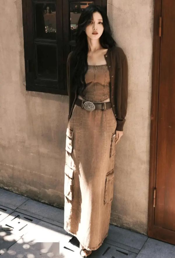 For fall, try a "Boho Chic" look by layering light and dark browns for a retro, artistic vibe. As Jiang Shuying demonstrates, slits enhance proportions, making them easy for petites.