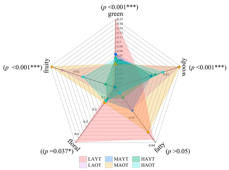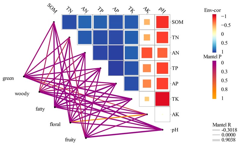 Second, available nitrogen (AN) and available phosphorus (AP) in the soil are positively correlated with the lipid aroma of tea.