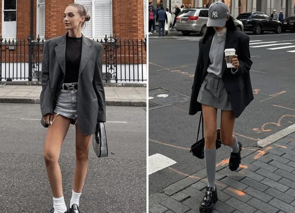 For example, a gray oversized blazer paired with a blue shirt and gray shorts creates a relaxed yet elegant look.