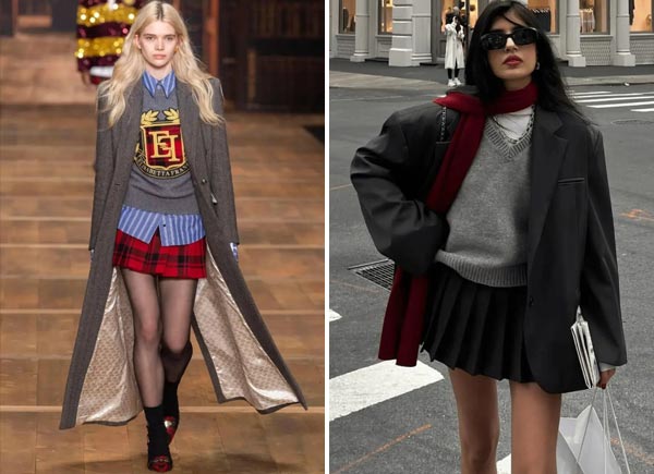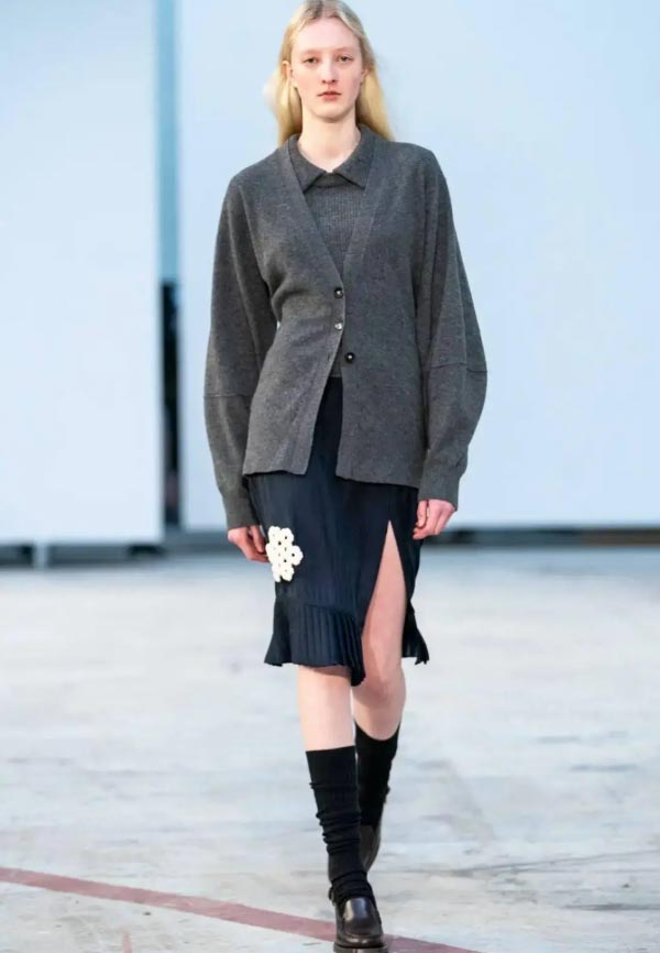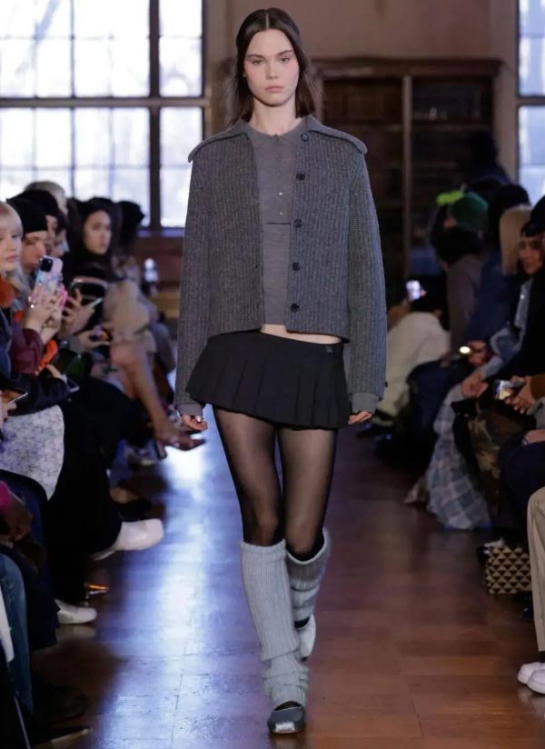 Take a cue from the runway and pair it with knitted stacked socks for a youthful and stylish look.