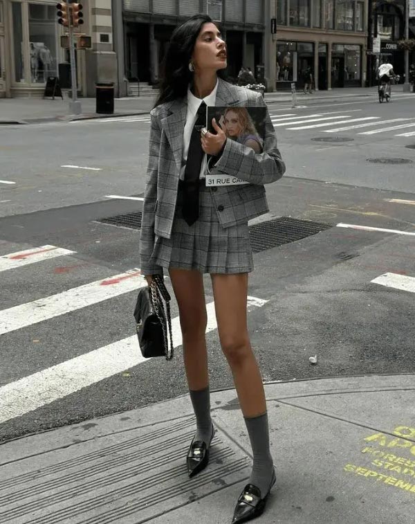 03. Short skirt + stacked socks