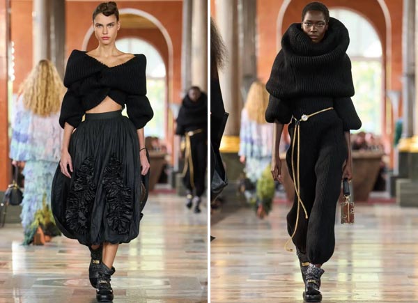 Nicolas Ghesquière's signature irregular silhouettes are also reflected in this collection, sometimes accentuated.