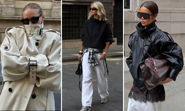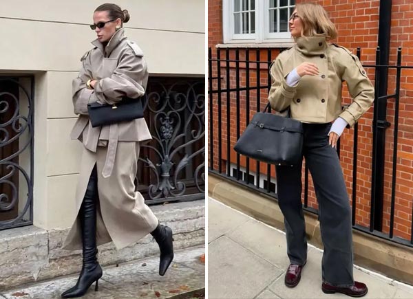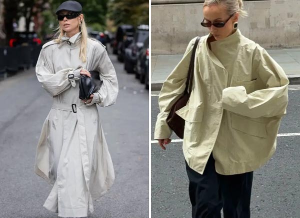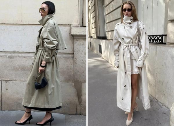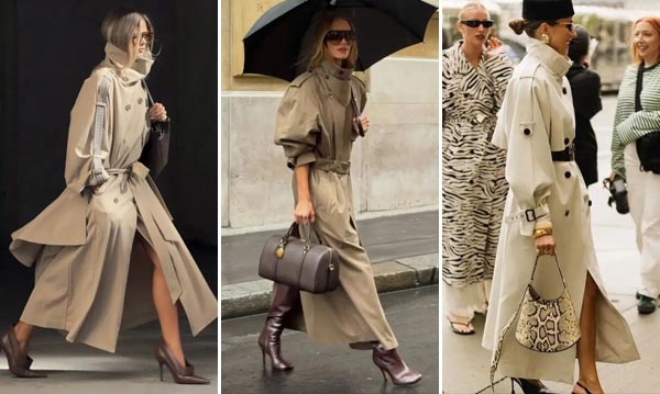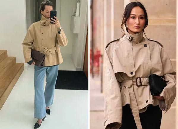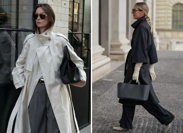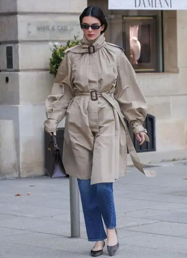 When a trench coat is fitted with a funnel collar, the lines no longer flare outward, but instead naturally converge along the neck, creating a more concentrated visual center of gravity.