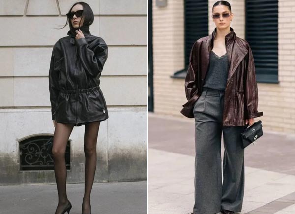 The more rounded shoulders and sleeves create a relaxed look, allowing the leather to maintain warmth beyond its sharp edge.